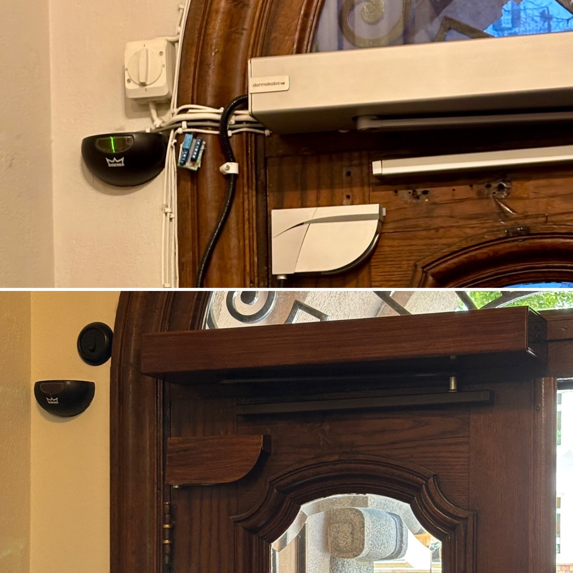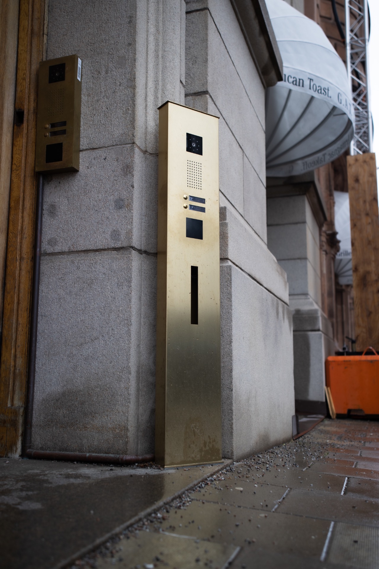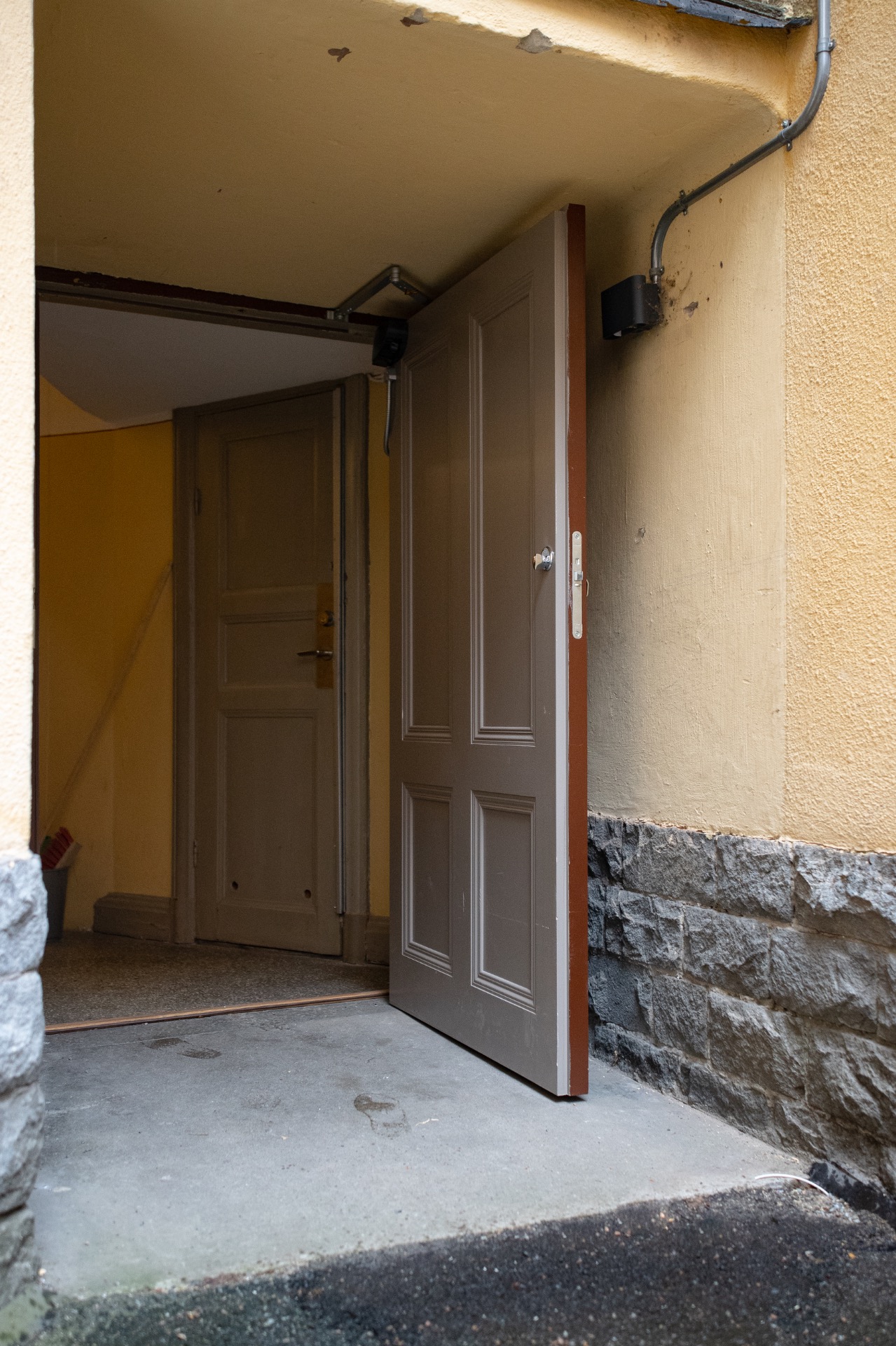 All utrustning ådringsmålades diskret för att smälta in i omgivningen och bevara husets karaktär. Resultatet blev en modern, driftsäker porttelefon- och dörrautomatiklösning med ett betydligt mer estetiskt och tidstypiskt uttryck, där både funktion och form lyfts till en ny nivå.