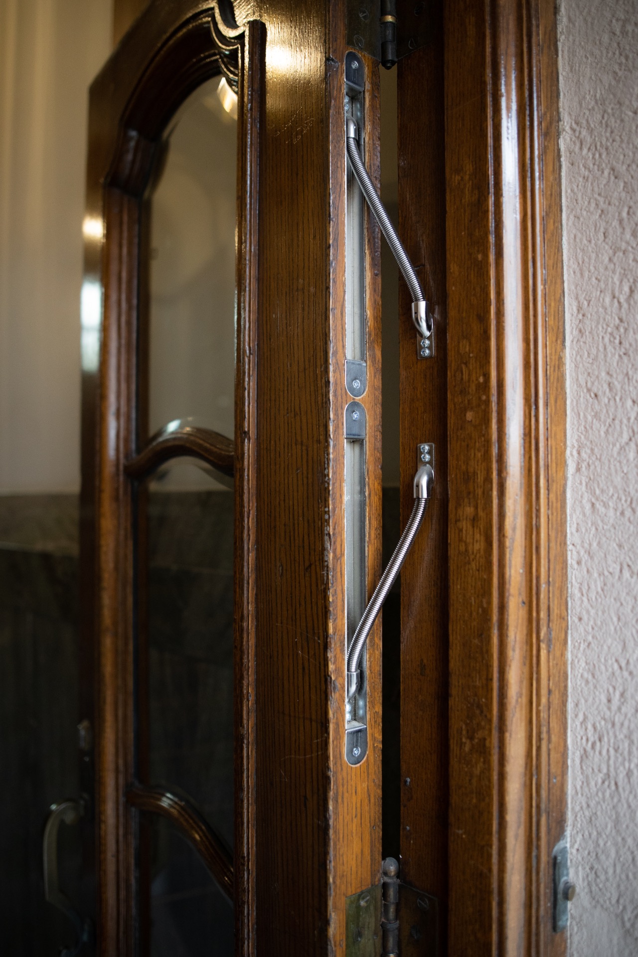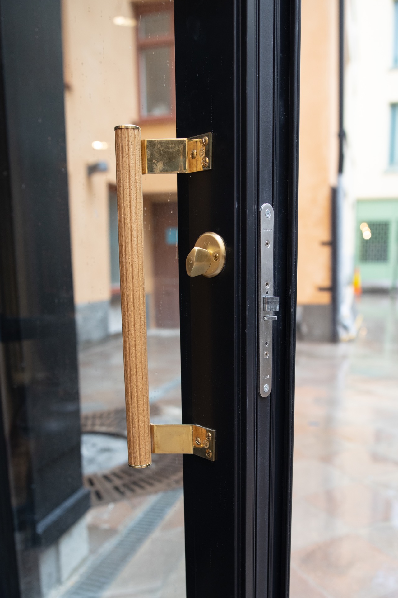 Det är extra roligt när det vackra, gamla draghandtaget kan sitta kvar och fortsätta vara en del av helhetsintrycket. Med rätt lösning kan ett nytt lås integreras diskret, så att dörrens tidstypiska detaljer framhävs i stället för att döljas. Resultatet blir en harmonisk kombination av traditionellt hantverk och modern säkerhetsteknik.