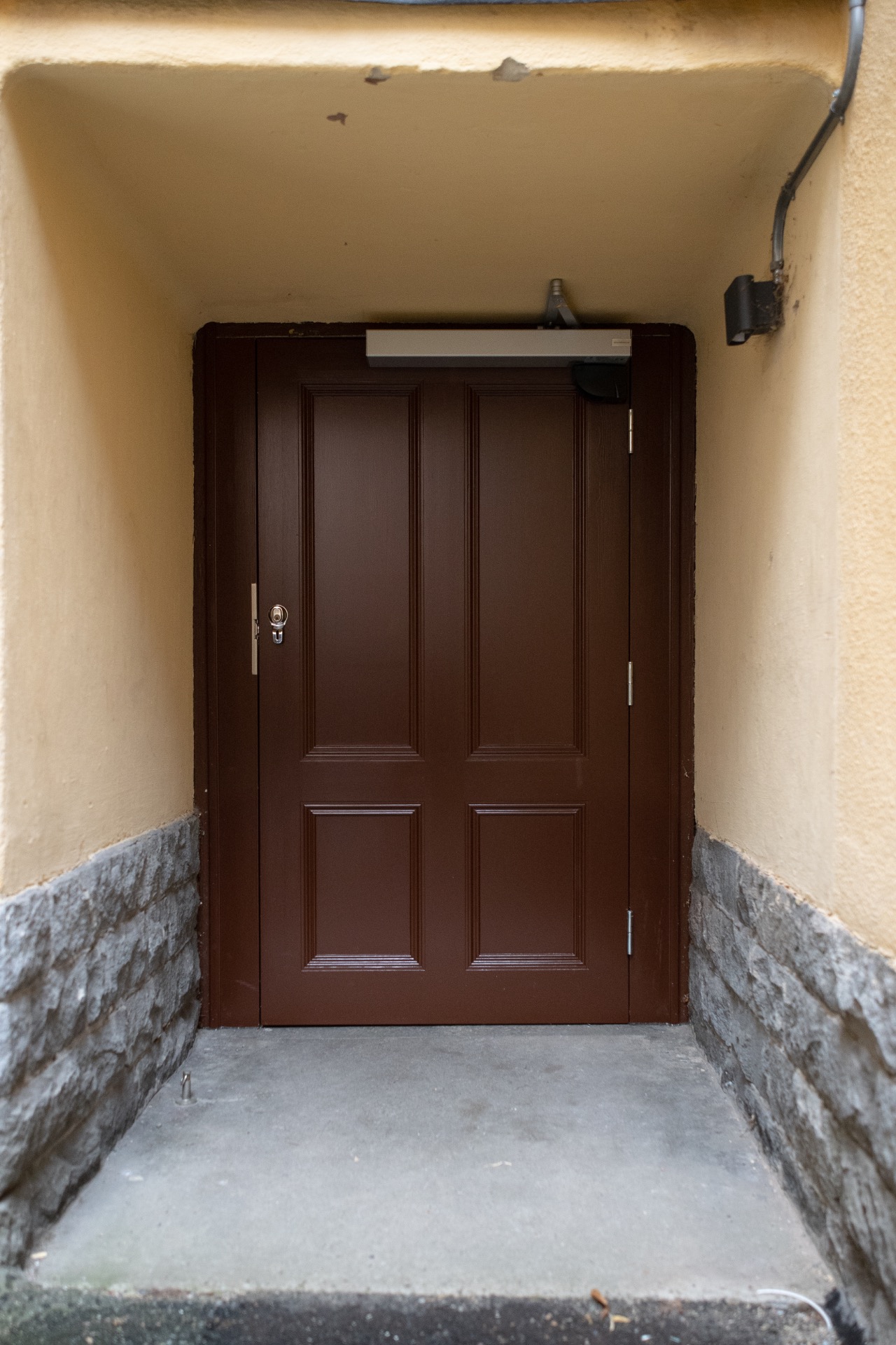 Nytt lås i en äldre dörr kombinerar klassisk charm med modern säkerhet. Genom att uppgradera låset går det att uppfylla dagens krav på inbrottsskydd och bekvämlighet, samtidigt som den ursprungliga karaktären i entrén bevaras. Det gör dörren både tryggare och mer funktionell i vardagen.